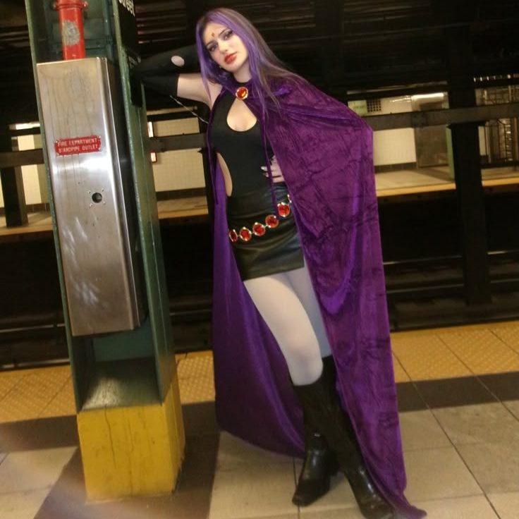 Dark and mysterious, Ravenβs look is perfect for those who love a gothic edge. A purple cloak, jewel belt, and dark lipstick complete the vibe.